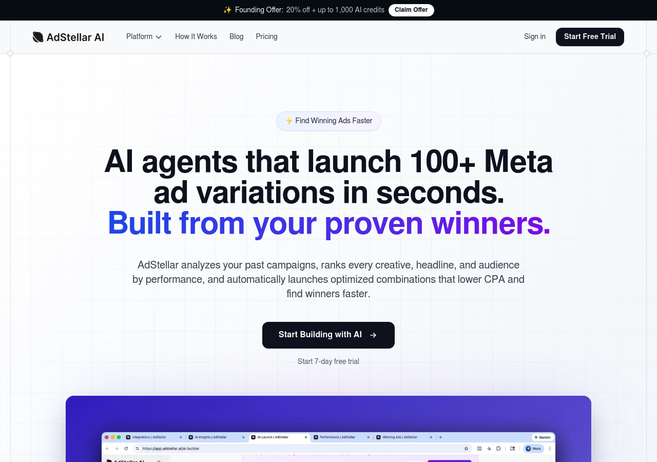 | AdStellar | AI recommendations | $49-399/mo | No | 7 days |