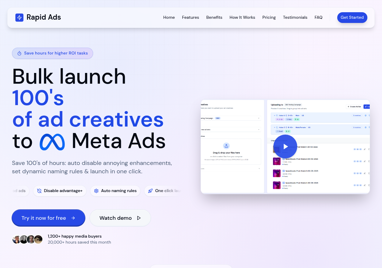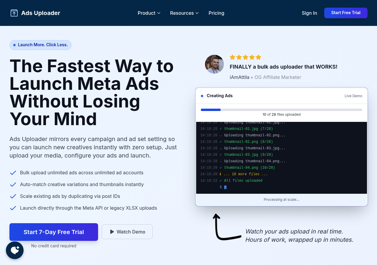 The key is choosing a tool that matches what you actually need. If you already have your creative strategy figured out and just want to eliminate the upload bottleneck, a focused bulk launcher will serve you better than an AI platform trying to run your entire account.